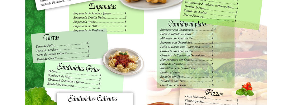 Diseño exterior de la carta de menú conservando el estilo del lugar, texturas, colores y fotos que ilustran el contenido. By foto arte